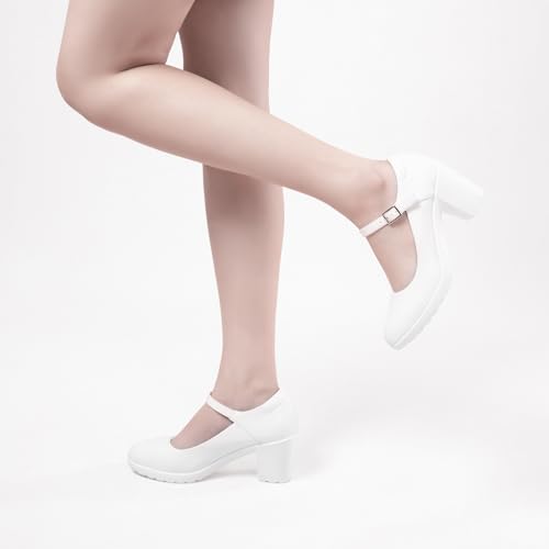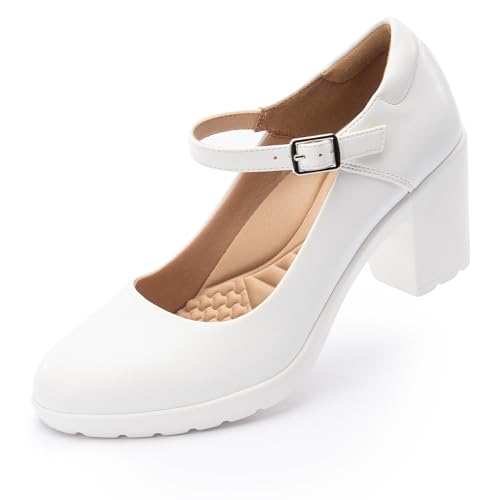 Mary Jane Heels with Arch Support, Closed Round Toe Chunky Pumps for Women, Comfortable Block Heel Dress Shoes
