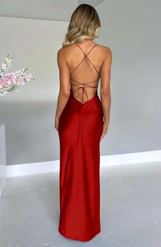 Memoriesea Women's Sexy Spaghetti Strap Bodycon Cowl Neck Party Cocktail Maxi Dress