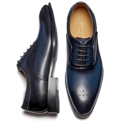 Men's Dress Shoes Genuine Leather Oxfords Luxury Formal Business Suit Shoes with Blake Rapid Stitch
