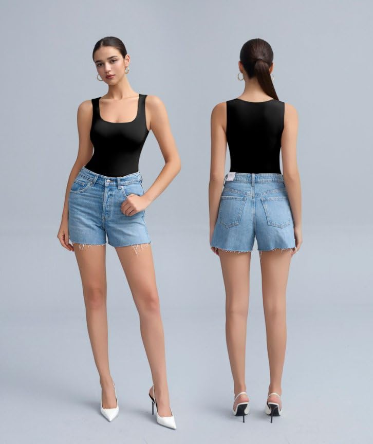 Women's Square Neck Thong Sleeveless Bodysuit Double-Lined Tank Top Slim Fit Stretchy Tank Top, Breathable Fabric