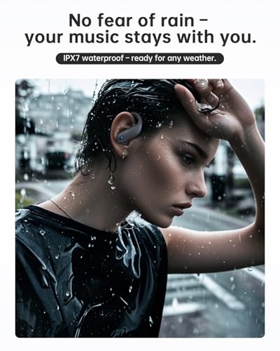 Secure Fit for Sports Earbuds & IPX7 Waterproof:Designed as over-ear wireless earbuds with flexible earhooks and lightweight construction (only 7.8g per earbud), these Bluetooth headphones stay securely in place during intense workouts like running, cycling, or gym sessions. Rated IPX7 waterproof, they resist sweat and rain to keep your sport earbuds protected.