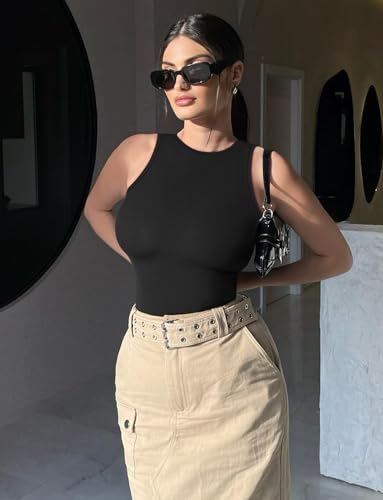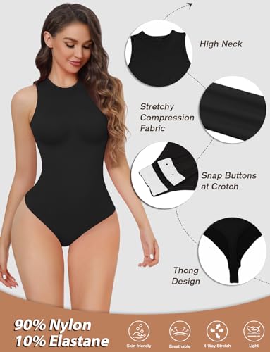 Women's Tummy Control Shapewear Bodysuit High Neck Seamless Body Shaper Sleeveless Racerback Thong Body Suit Tank