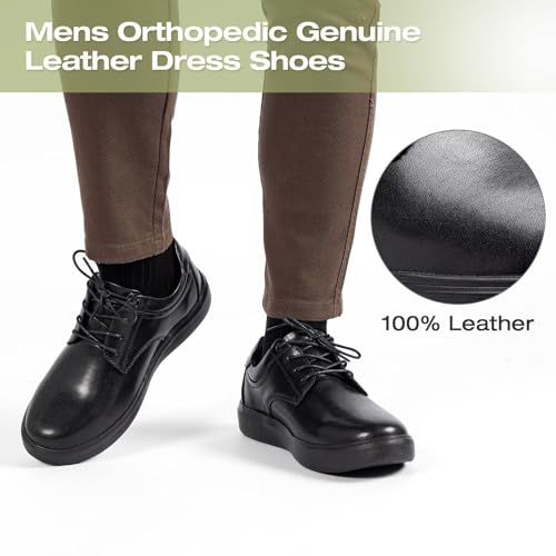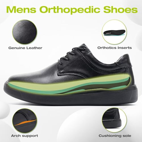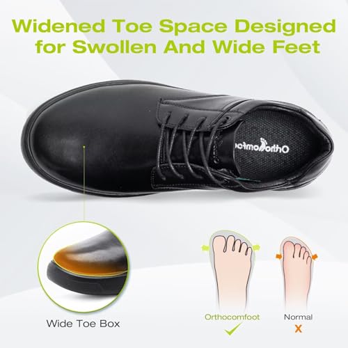 OrthoComfoot Men's Orthopedic Wide Leather Dress Walking Shoes: Comfortable Arch Support Oxfords for Plantar Fasciitis, Orthotic Casual Business Work Shoes for Foot and Heel Pain Relief
