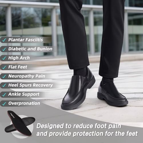 Orthopedic Business Leather Dress Shoes: Comfortable Arch Support Plantar Fasciitis Formal Tuxedo Oxford for Mens, Casual Classic Modern Wingtip Slip On Loafers for Foot and Heel Pain Relief
