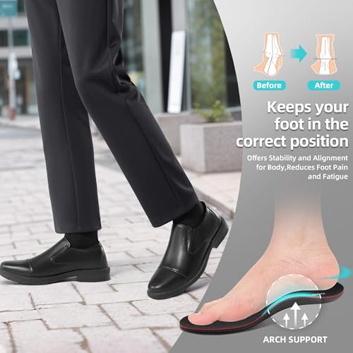 Orthopedic Business Leather Dress Shoes: Comfortable Arch Support Plantar Fasciitis Formal Tuxedo Oxford for Mens, Casual Fashion Modern Wingtip Slip On Loafers for Foot and Ankle Pain Relief