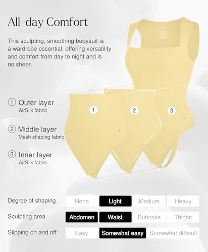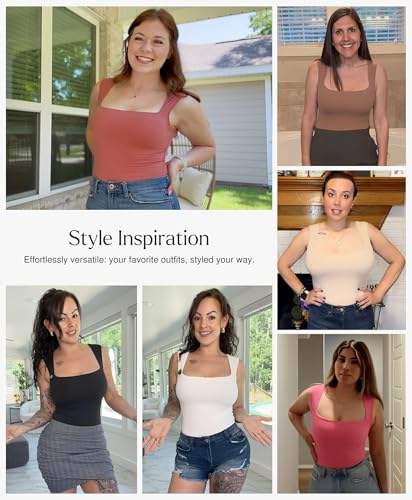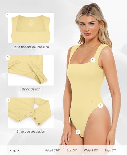 Popilush Bodysuits for Women - Sleeveless Square Neck Thong Bodysuit Tummy Control Going Out Double Lined Tops