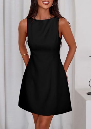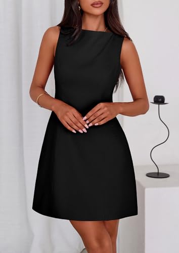 PRETTYGARDEN Womens Formal Short Dresses 2025 Summer Sleeveless Boat Neck A Line Elegant Mini Cocktail Party Dress