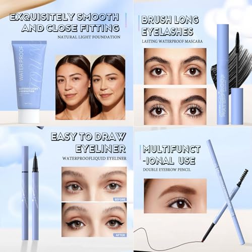 [Face Makeup Set]: This full face makeup set includes lip gloss, lipstick, eyeliner, mascara, eyebrow pencil, concealer, powder and foundation. One set can solve all your facial makeup problems.