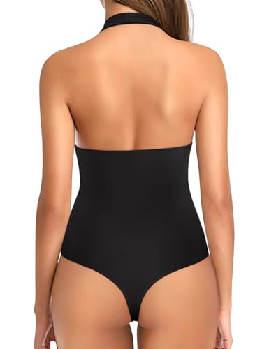 REORIA Bodysuits for Women Halter Tops 2025 Summer V Neck Backless Body Suits Tank Top Trendy Fashion Clothing