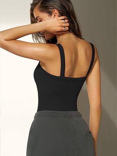 REORIA Women's Seamless Ribbed Bodysuit Sleeveless Waist Control Stretchy Thong Back Tank Top for Casual Workout
