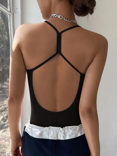 REORIA Women's Sexy Scoop Neck Backless Bodysuits Open T-Back Cami Sleeveless Bodysuit Tank Top Trendy
