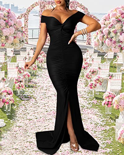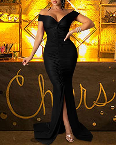 Sexy Formal Dress for Women Ruched Off Shoulder Club Cocktail Bodycon Evening Gown Maxi Long Dresses