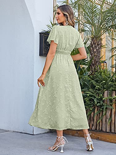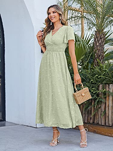 Simplee Women's Boho Floral Maxi Dress Flowy Casual V Neck Short Sleeve Wedding Guest Holiday Beach Long Dress