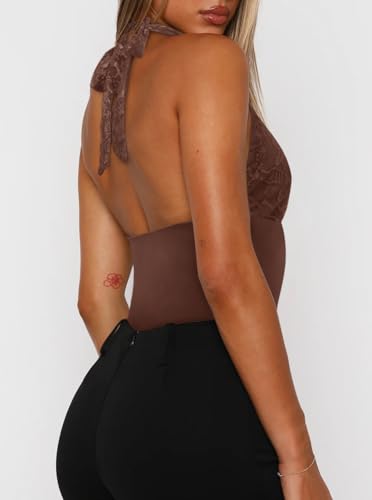Summer Sexy Floral Lace Halter Deep V Neck Sleeveless Backless Trendy Going Out Corset Body Suits