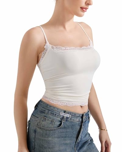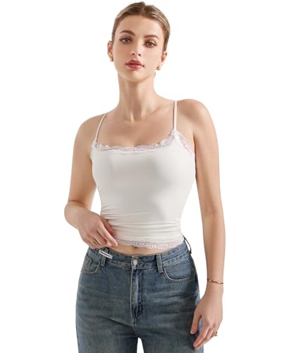 SUUKSESS Women Lace Double Lined Camisole Top Spaghetti Strap Going Out Tank Top