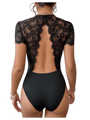 Verdusa Women's Lace Short Sleeve Bodysuit Backless Bodysuits Tummy Control Night Out Concent Outfits