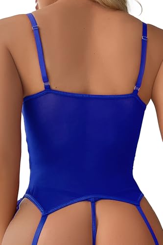 Women Lingerie Sexy Floral Lace Lingerie Set 3 Piece Bodysuit Teddy Outfit with Bustier G-string and Stockings