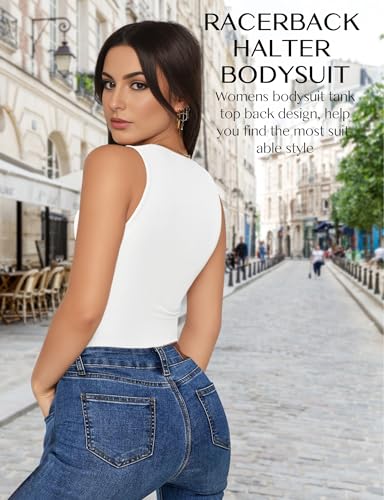 Women's Crew Neck Sleeveless Bodysuits Racerback Halter Tank Top Body Suits for Womens Sexy Going Out Leotards