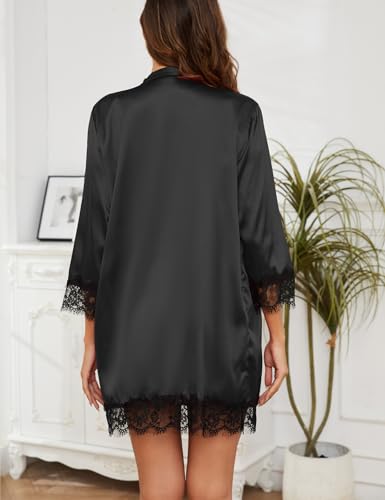 Womens Lingeries Silk Pajamas Robes Set 4 Pcs Sexy Pjs Cami Shorts Satin Sleepwear Lace Loungewear