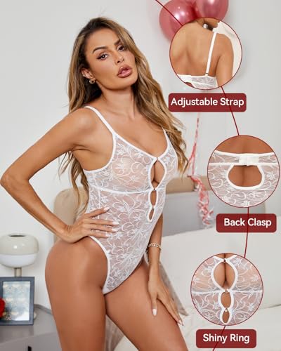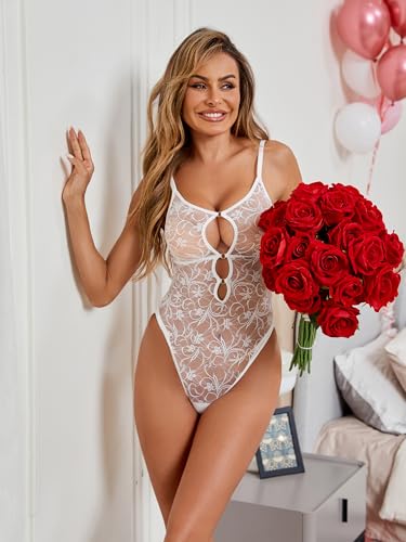 Womens Sexy Lingerie Teddy Lace Bodysuit Mesh Sleepwear Hollow Out One Piece Babydoll Rave Outfits