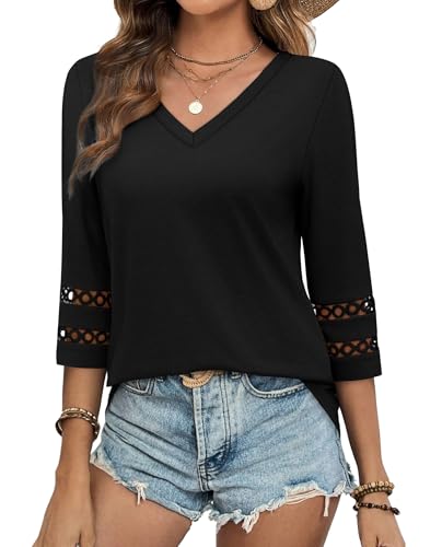 XIEERDUO 3/4 Length Sleeve Womens Tops Dressy Casual Blouses for Women 2025 Trendy V Neck T Shirts Summer Clothes