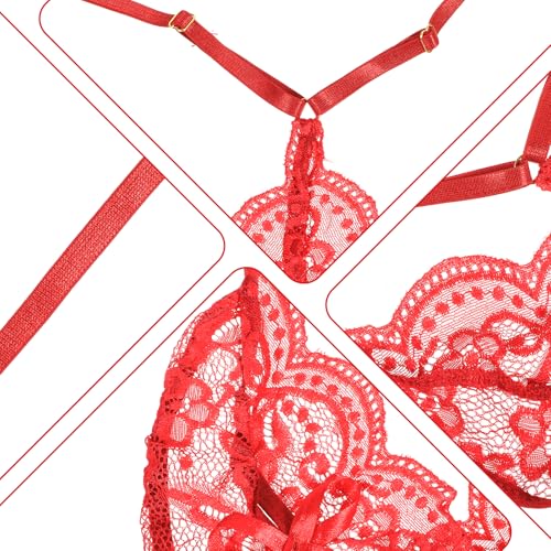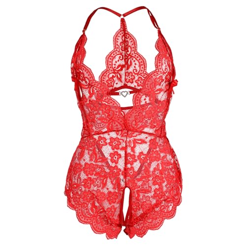 Teddy Lingerie For Women Sexy Floral Lace Lingerie Sheer Bodysuit Women's Exotic Underwear Nightgown One Piece Red Black