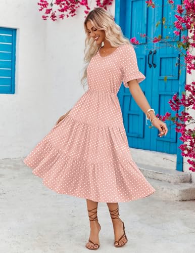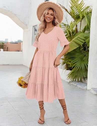 Zeagoo Women's Summer Dresses Midi Tiered Casual Dress Floral V Neck Ruffle Short Sleeve Flowy Beach Dress with Pockets