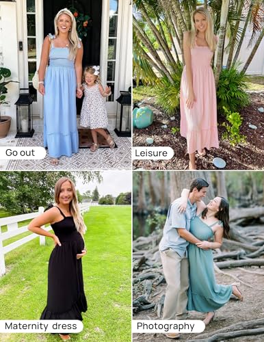 ZESICA Women's 2025 Summer Boho Spaghetti Strap Square Neck Solid Color Ruffle A Line Beach Long Maxi Dress