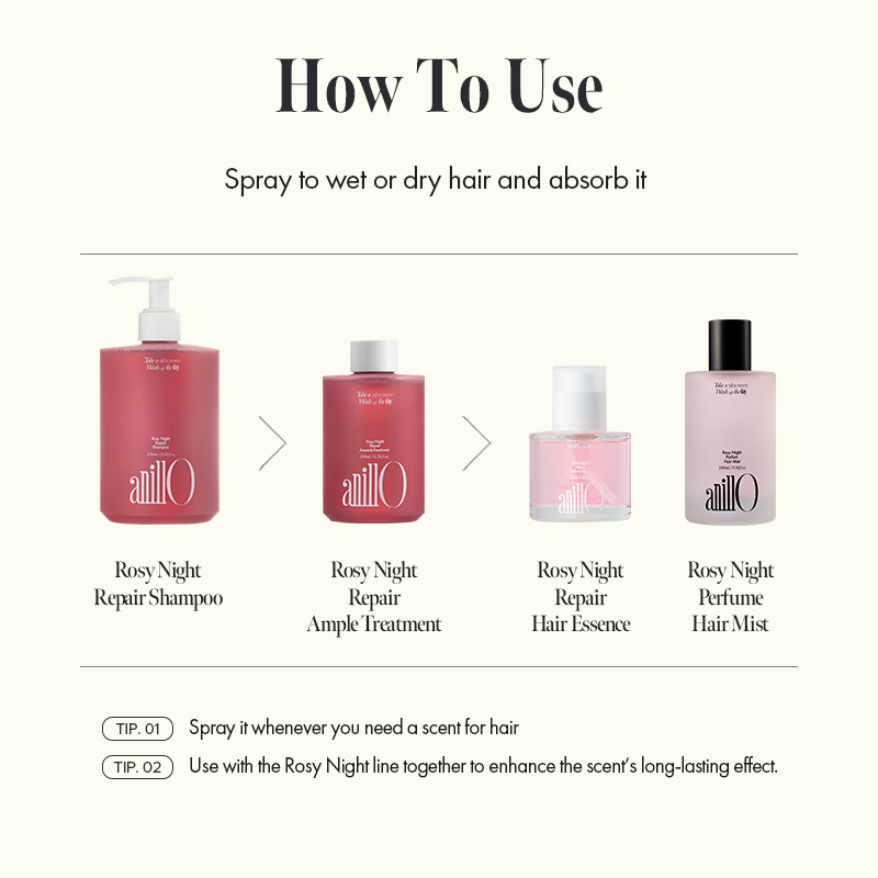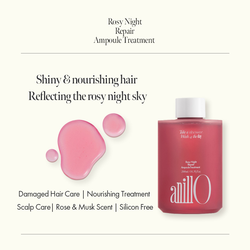 [ANILLO] SET of Rosy Night Repair Hair Shampoo450ml + Ampoule Treatment200ml + Hair mist100ml + Hair Essence50ml_damaged Hair Repair