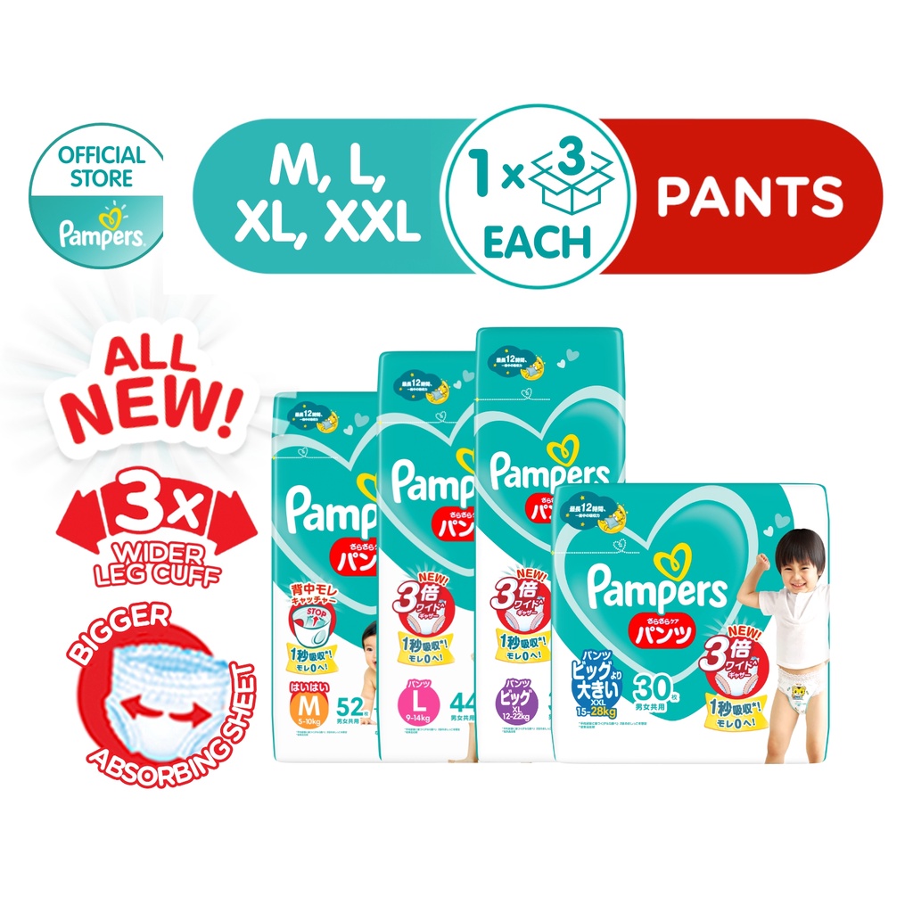 [Bundle of 3 Packs Pampers ] Baby Dry Pants Diapers x1 Carton Size M - XXL