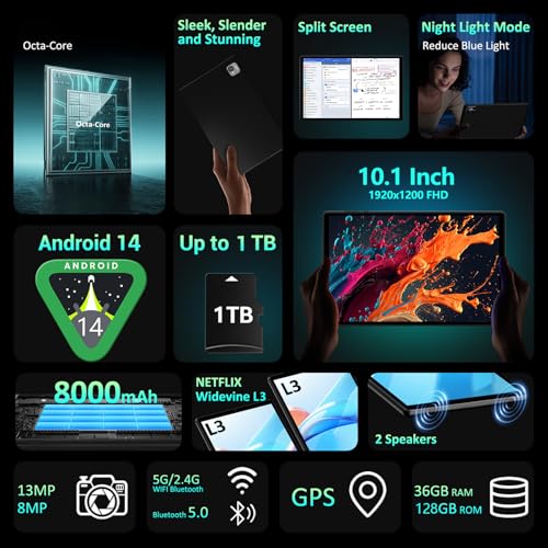 ????2025 Android 14 Tablet??Experience the future with Android 14 and a powerful Octa-Core processor (up to 2.0GHz). Perfect for multitasking, gaming, streaming, and creative work.