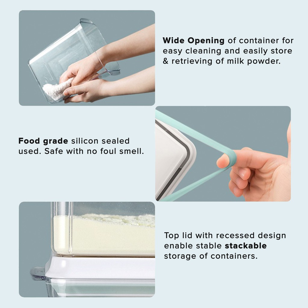 ANKOU AirTight Milk Powder Container with Scraper - Rectangle Clear(1000ml/ 1700ml/ 2300ml)