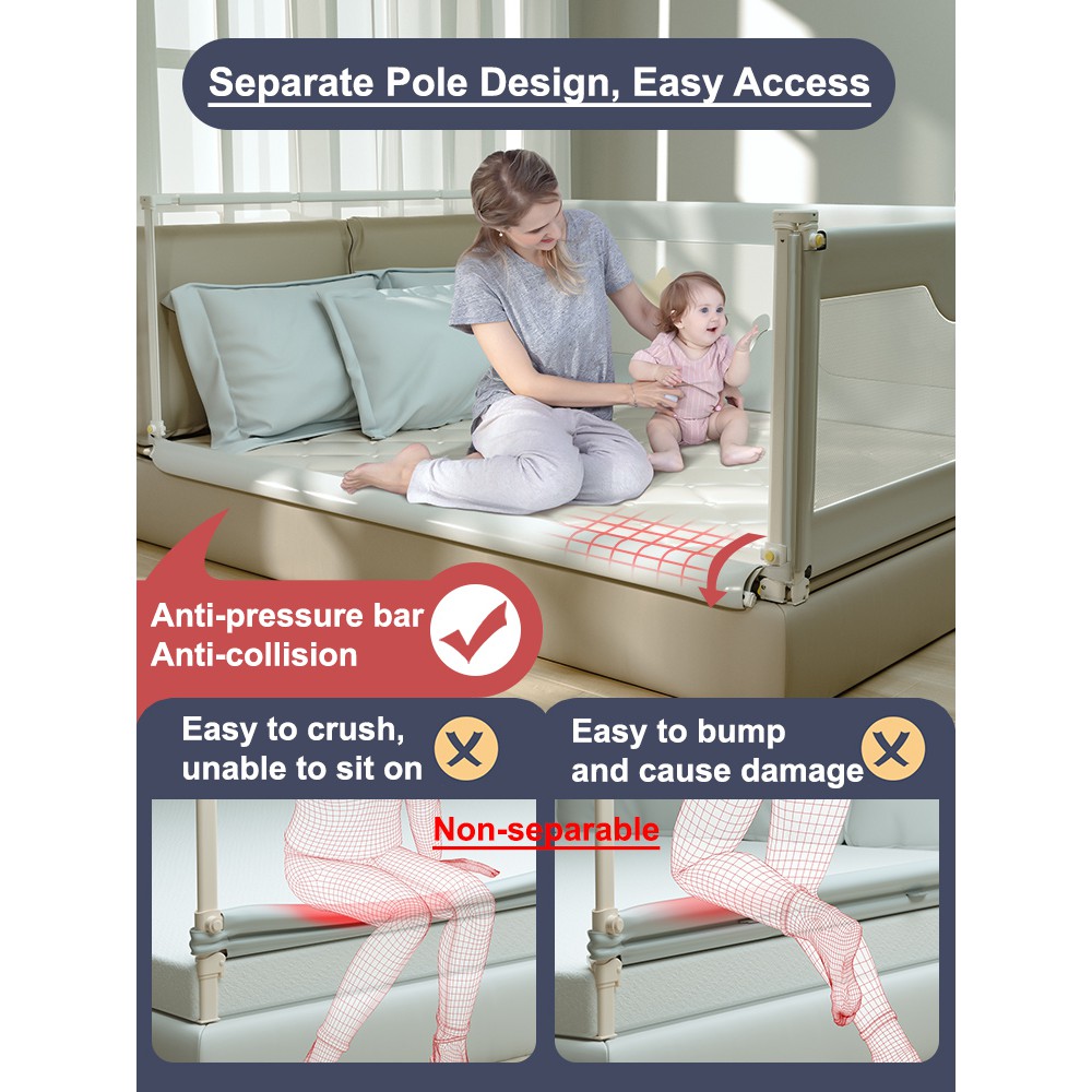 Baby Kids Bed Fence Vertical Lift Baby Bed Rail Guard Fence for Single, Super Single, Queen and King Bed