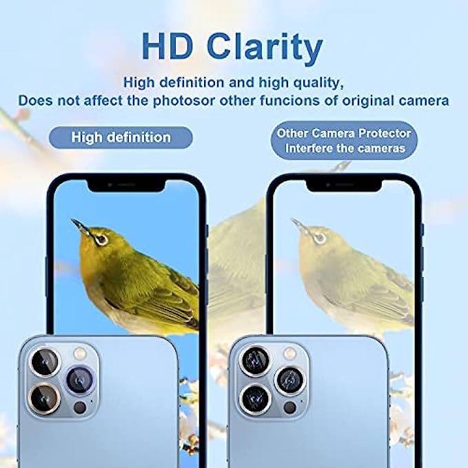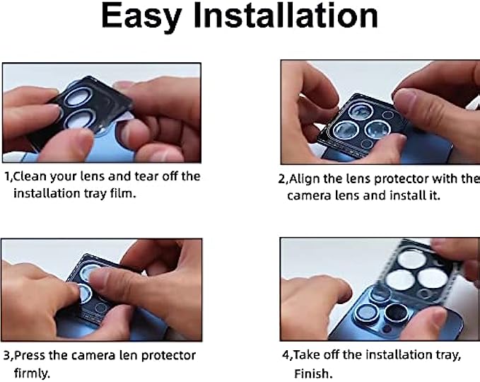 [Compatible With iPhone 13 Pro & iPhone 13 Pro Max] Our Camera lens protector for iPhone 13 Pro Max (6.7 inch) /iPhone 13 Pro (6.1 inch),NOT for iPhone 13 mini 5.4 inch / iPhone 13 6.1 inch. [10S Installation] You don't need to install them one by one.Our camera lens cover for iphone 13 pro is very esay to install,Just remove the camera lens glass film,align with the hole, place and press them on the camera screen.No fingerprint,No bubbles and leaves no residue when removed. [Alloy Material] Our camera lens screen protector 13 pro max is made by premium aviation aluminum and 9H tempered glass.The lens protector is only 0.03mm thickness,Precision cutting of alloy materials and tempered glass perfectly compatible with iPhone 13/iPhone 13 Pro Max camera lens. [Anti-Scratch/Water/Dust] Anti-Scratch/Water/Dust full coverage protection, protect camera lens from daily life.13 pro max camera protector covers the whole lens to the bottom, as an essential tool, to keep every inch of your iPhone 13 Pro Max protected completely. [Highly Durable] This camera lens for iphone 13 pro max made of 9H Tempered Glass offers enough protection the phone camera from highly impact, scratched.