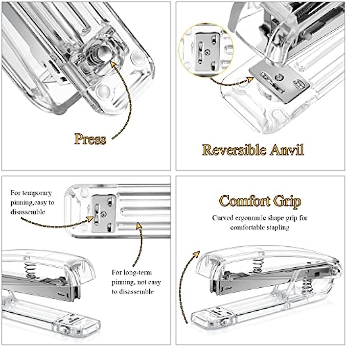 • Package Content: you will receive 2 clear acrylic staplers with 2000 staples, 2 notepad holders and 2 acrylic pen holders, 2 staple removers and 2 tape dispensers, sufficient in quantity and rich in combination to meet your different needs for home and office use