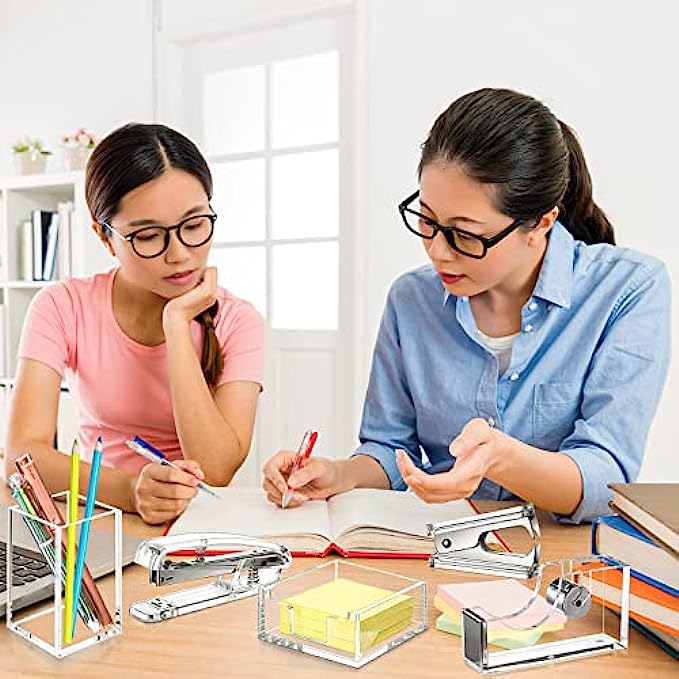 • Reliable and Sturdy: the acrylic office accessories set includes transparent stapler, pen holder, notepad holder, staple remover and tape dispenser is mainly made of clear acrylic, strong and sturdy enough, not easy to break and deform, practical and useful, can serve you for a long time