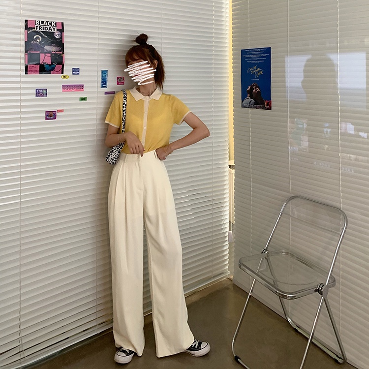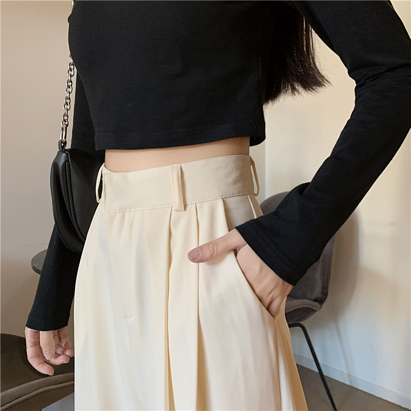 Flowy Long Pants Women Korean Loose Wide Leg Plain High Waist Green Trousers