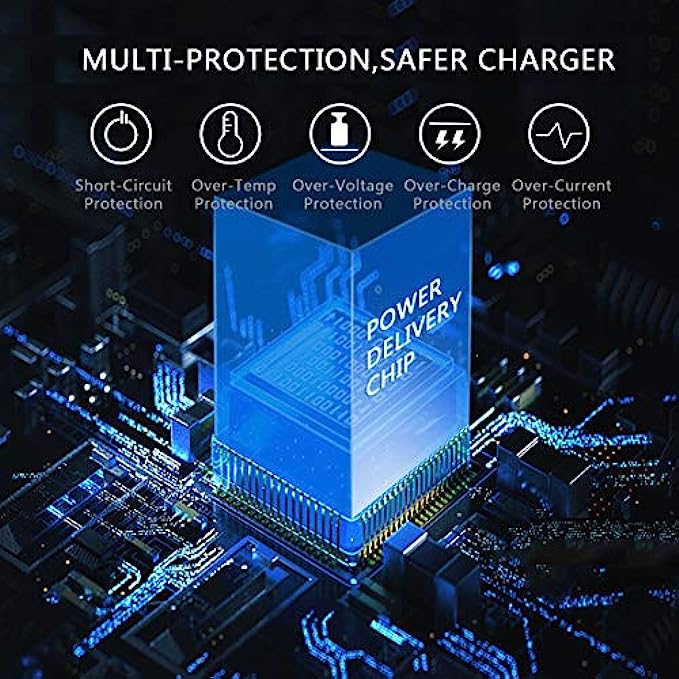 Protection Function: Fireproof material. USB C power adapter fire proof shell and over charging, over currents, and over heating. Charging stops when battery is full.