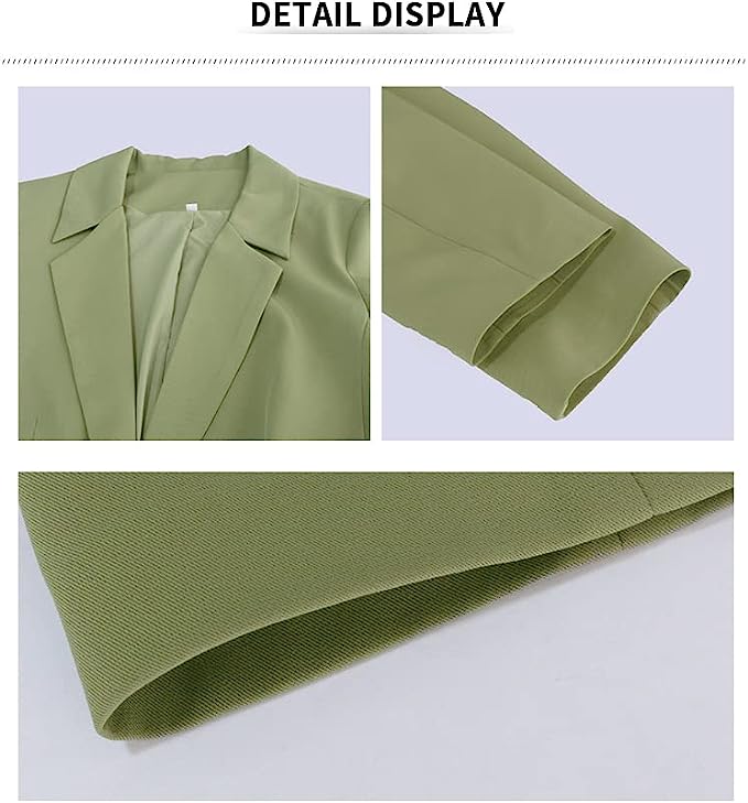 95%Polyester 5%Elastane Imported casual blazer jacket for women Button closure Machine Wash The work office blazer jacket is made of 95% polyester & 5% elastane, skin-friendly to wear all day. Classic Design: The casual blazer comes with one button, long sleeves and two functional flap pockets. This business blazer goes with four color, black blazer/ white blazer/ apricot blazer/ green blazer/khaki blazer, This is one of those open front blazer that is so flattering you want one of every color
