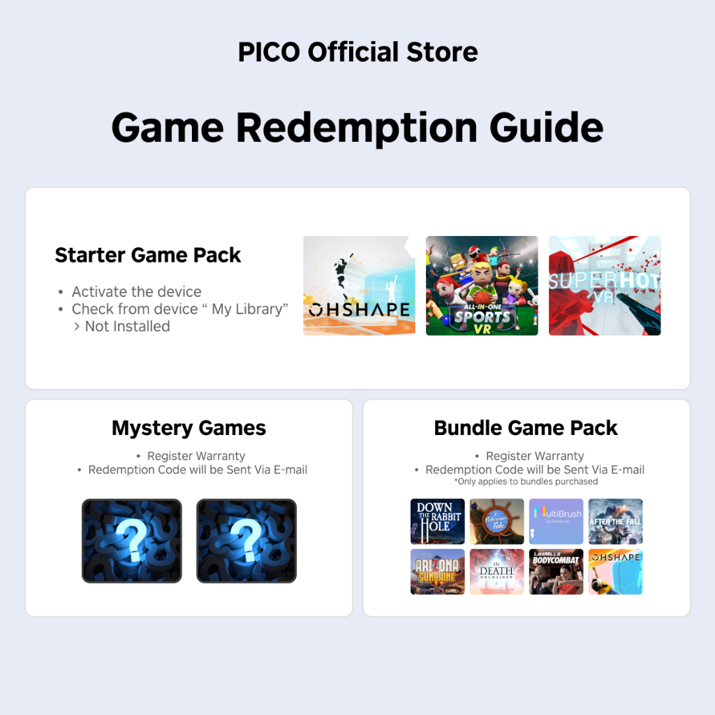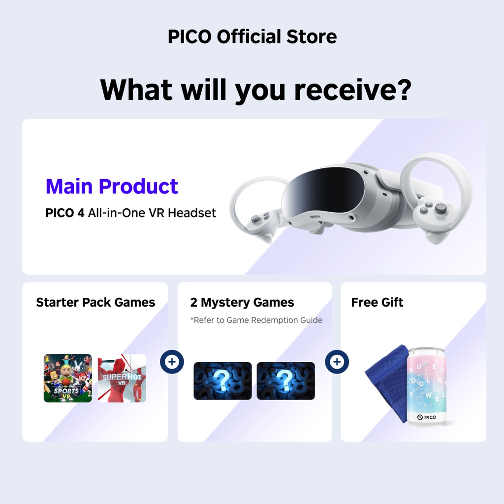 PICO 4 All-In-One VR Headset + Starter + Mystery Bundle (FOC 4 Games)