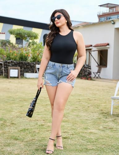 Women's Sleeveless Crew Neck Bodysuit Top Sexy Slim Summer Stretch Tank Top