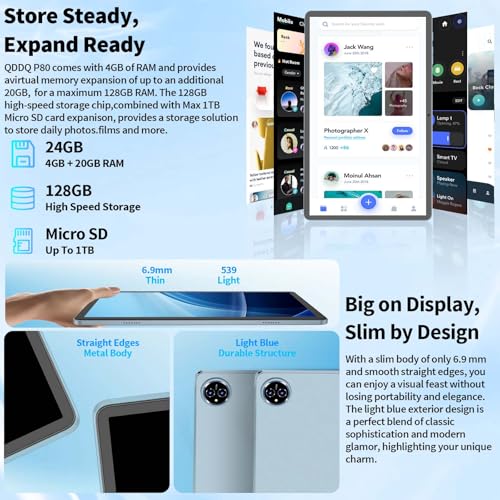 ??Android 15 Tablet, 128GB ROM??New large-capacity Android 15 tablet 24GB RAM (4GB RAM + 20GB extend), 128GB ROM allows you to store more photos and documents. A micro SD card slot expands storage up to 1TB (FAT32 format, sold separately) so you can store all your favorite media files together, including ebooks, videos, photos. Android 15 and GMS certified, allowing you to download popular apps from the Google Play Store