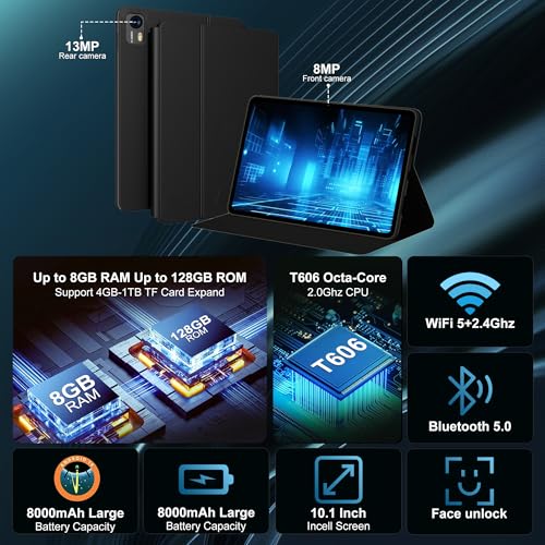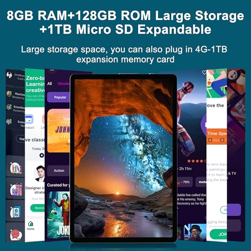 ??Excellent performance??This Android 14 tablet has 128GB ROM+8GB RAM, 1TB extra expansion, can store more games, movies, videos, music and work software for you, and support a huge amount of apps, you can play bigger games, download the movies you want to watch and favorite songs, and hold a lot of work files, Make life and work productive at the same time.