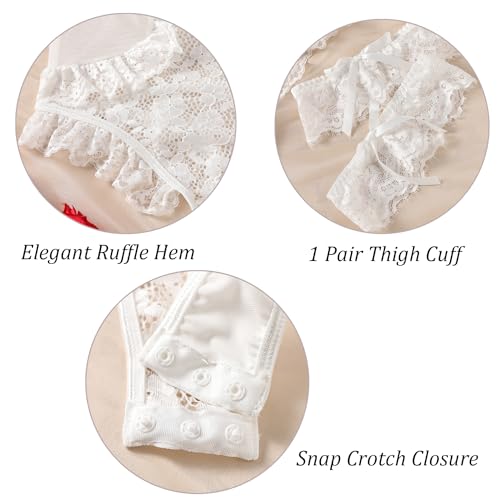 Aranmei Women Sexy Lingerie Bodysuit Floral Lace Teddy Babydoll Snap Crotch Ruffle One Piece with Thigh Bands