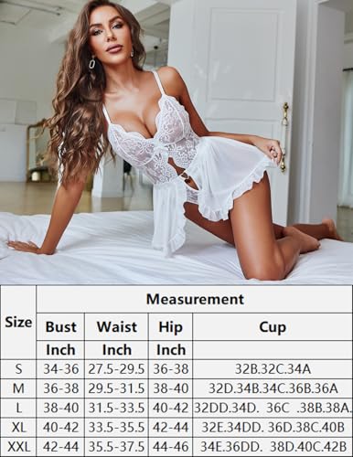 Avidlove Lingerie for Women Sexy Lace Bodysuit One Piece Teddy Lingerie Deep V Mesh Nightgown with Ruffle Hem