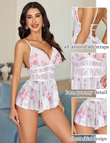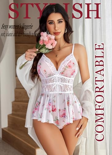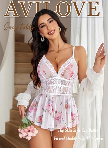 Avidlove Lingerie for Women One Piece Teddy Lace Bodysuit Sexy Babydoll V Neck Mesh Sleepwear