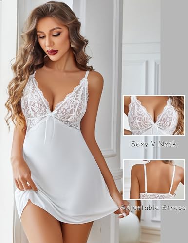 Avidlove Lingerie for Women Sexy Babydoll Chemise Nightgown Lace Strap Nightwear Modal Sleep Dress