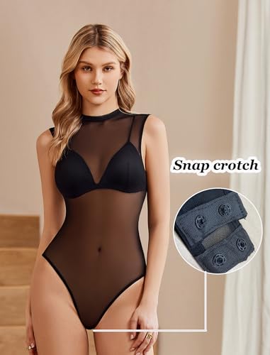 Avidlove Women??s Sheer Mesh Sexy Body Suit Sleeveless Bodysuits Tops Going Out See Through Shirts Leotards (Bra Not Included)