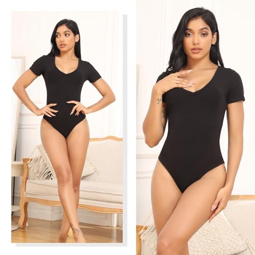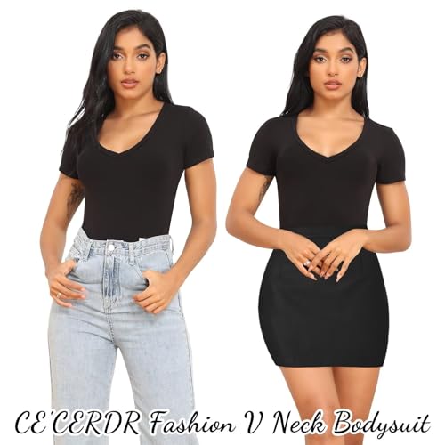 CE' CERDR 5 Pack Bodysuits for Women Short Sleeve Deep V Neck Tops T-shirt Bodysuit Casual Outfits