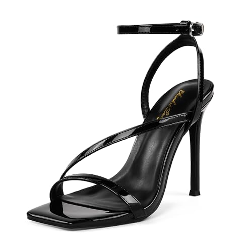 Elisabet Tang Women??s Crystal Stilettos Heeled Sandals, 4 Inch Square Open Toe Strappy Sexy High Heels Ankle Strap Buckle Heels for Party Wedding Dress Daily Wear Shoes